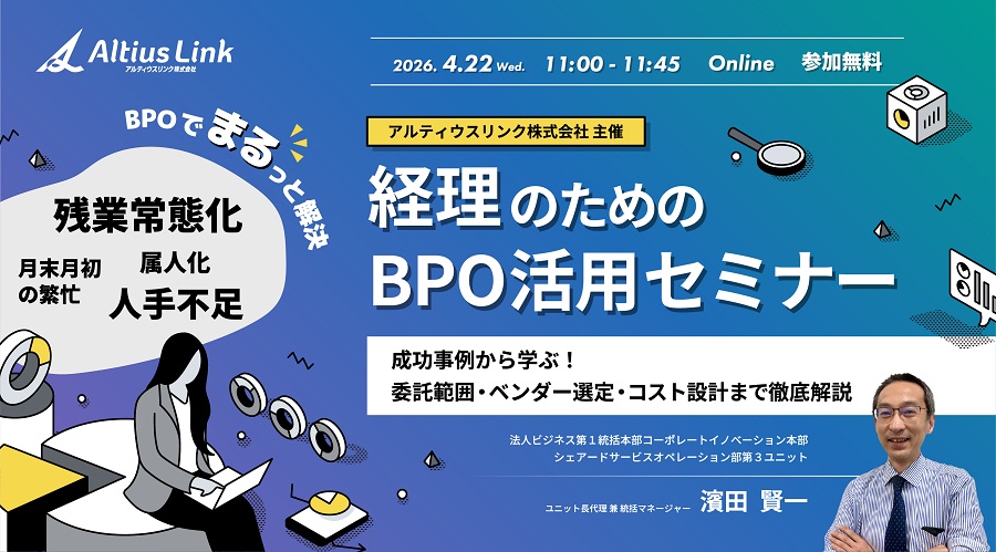 | 内容 | 経理のためのBPO活用セミナー ~成功事例から学ぶ委託範囲・ベンダー選定・コスト設計まで徹底解説~ |